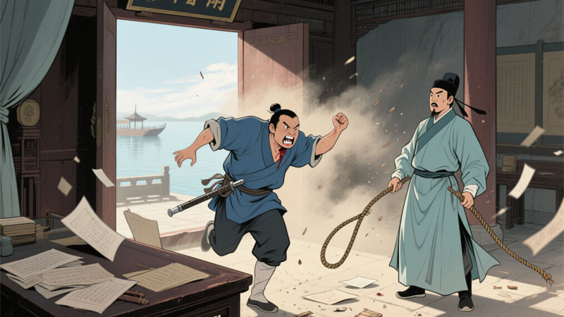哎呦,案台都掀翻了,李爷,快去吧,咱的人都吓跑了……